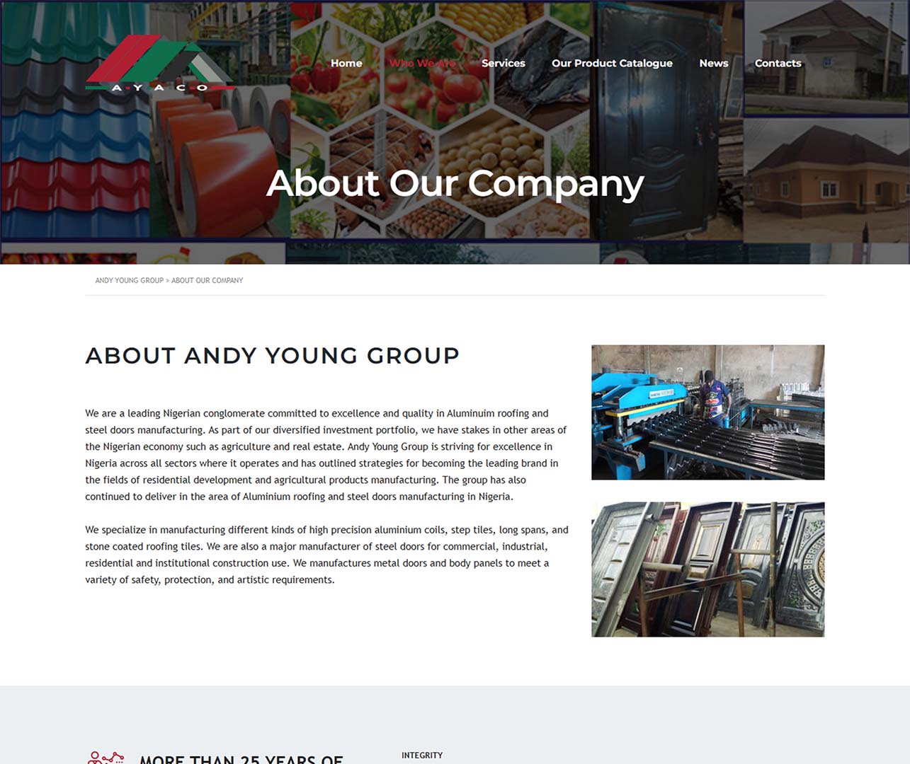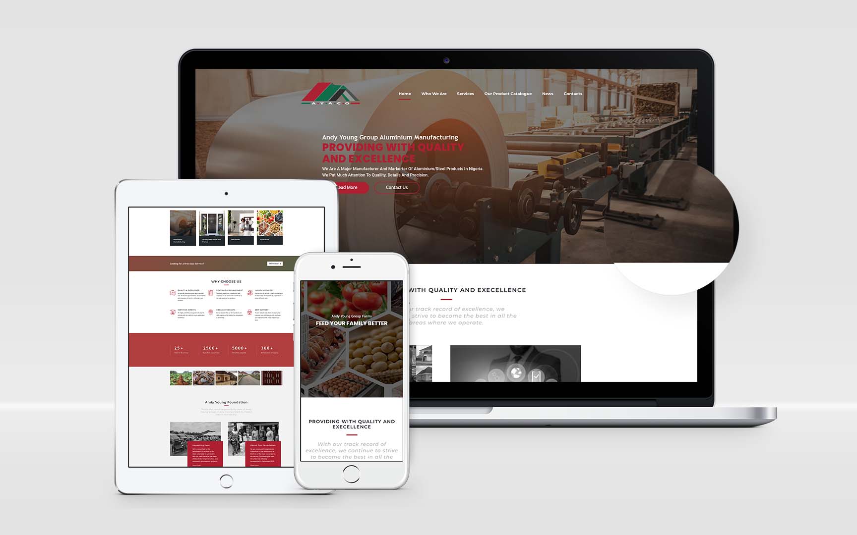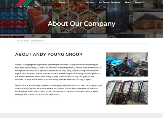 Designed and developed a corporate website for Andy Young Group (AYG) — a leading Nigerian conglomerate with diversified operations in aluminium/steel manufacturing, real estate development, and agriculture. The site presents the company’s history, mission, services, and foundation while enhancing credibility and business outreach.